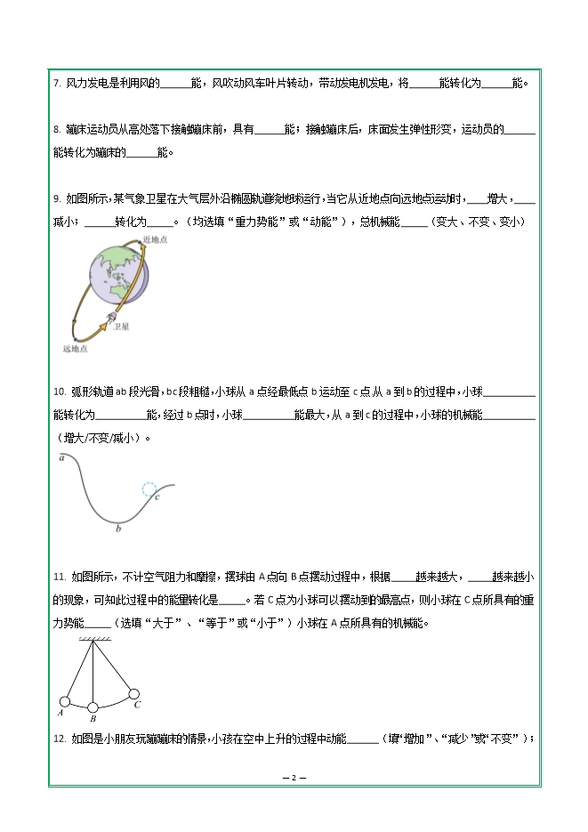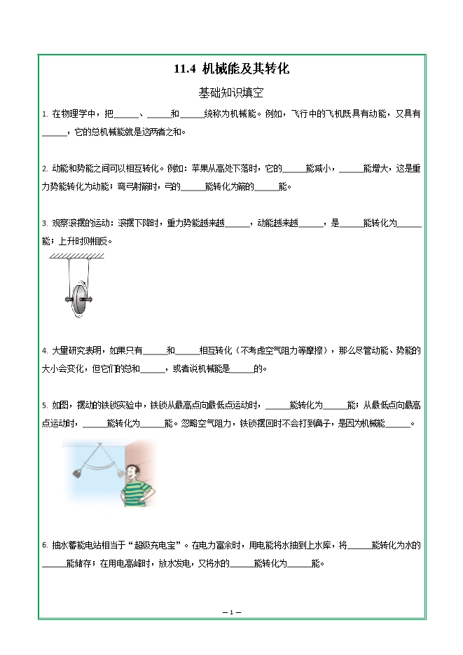 【内容简介】第十一章 第四节 机械能及其转化—2025-2026学年人教版物理八年级下学期预习基础知识填空(附答案)