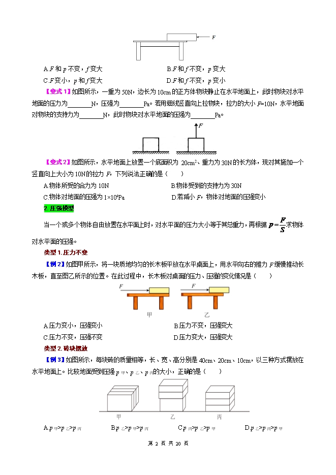 【内容简介】2026年中考物理模型与方法强化重难点专题训练:专题4.固体压强模型(学生版和教师版)