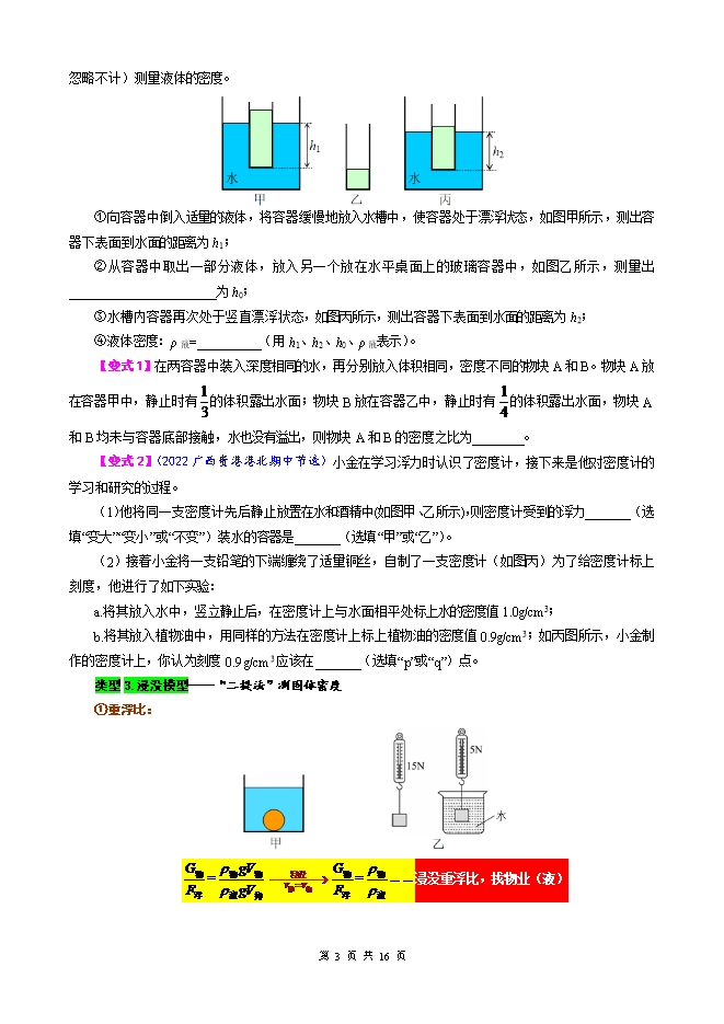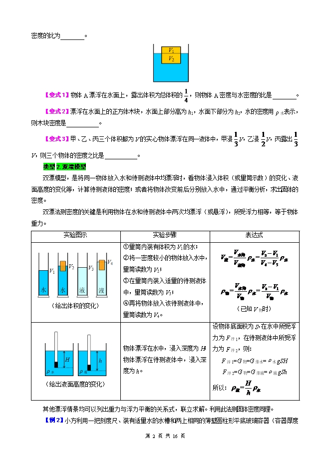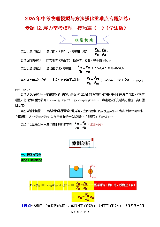【内容简介】2026年中考物理模型与方法强化重难点专题训练:专题12.浮力常考模型—技巧篇(一)(学生版和教师版)