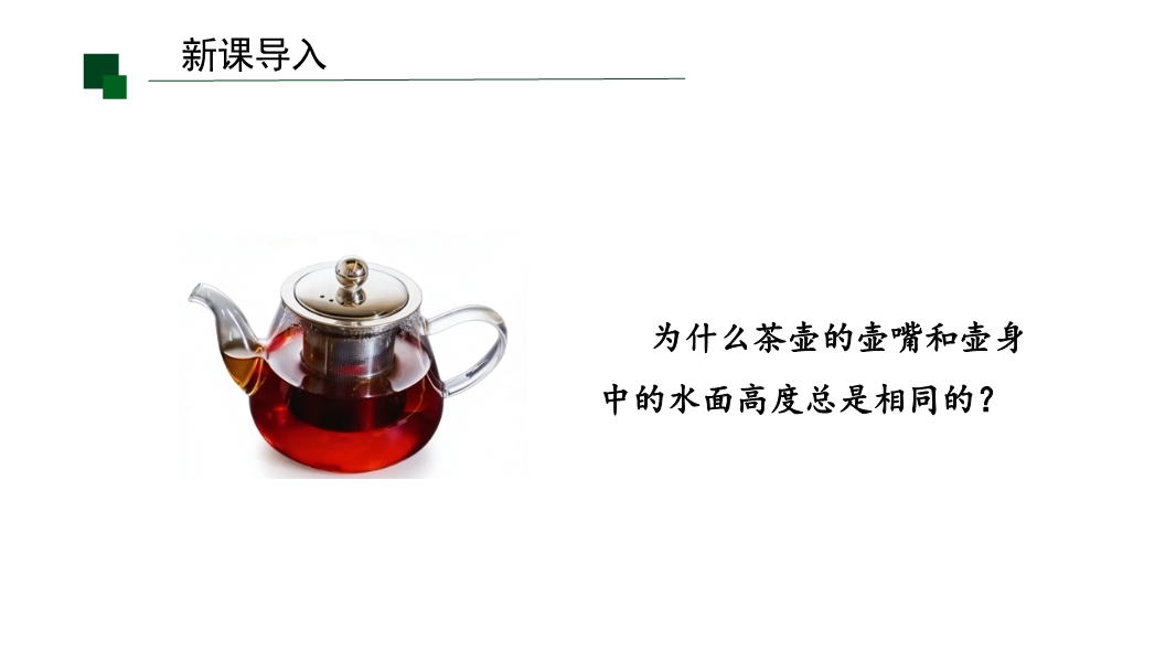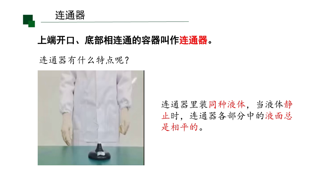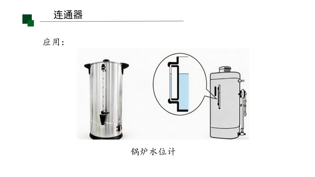 【内容简介】课件围绕连通器的定义、特点、原理及应用展开,通过“茶壶水面高度相同”的生活问题导入,结合U形管装红墨水的观察实验,搭建从现象到实验再到理论推导的学习支架,帮助学生理解知识点。其亮点在于以科学探究为导向,通过实验操作培养科学思维,结合锅炉水位计、三峡船闸等实例渗透物理观念,小结系统梳理知识。学生能提升探究与联系实际能力,教师可借助结构化内容高效教学。