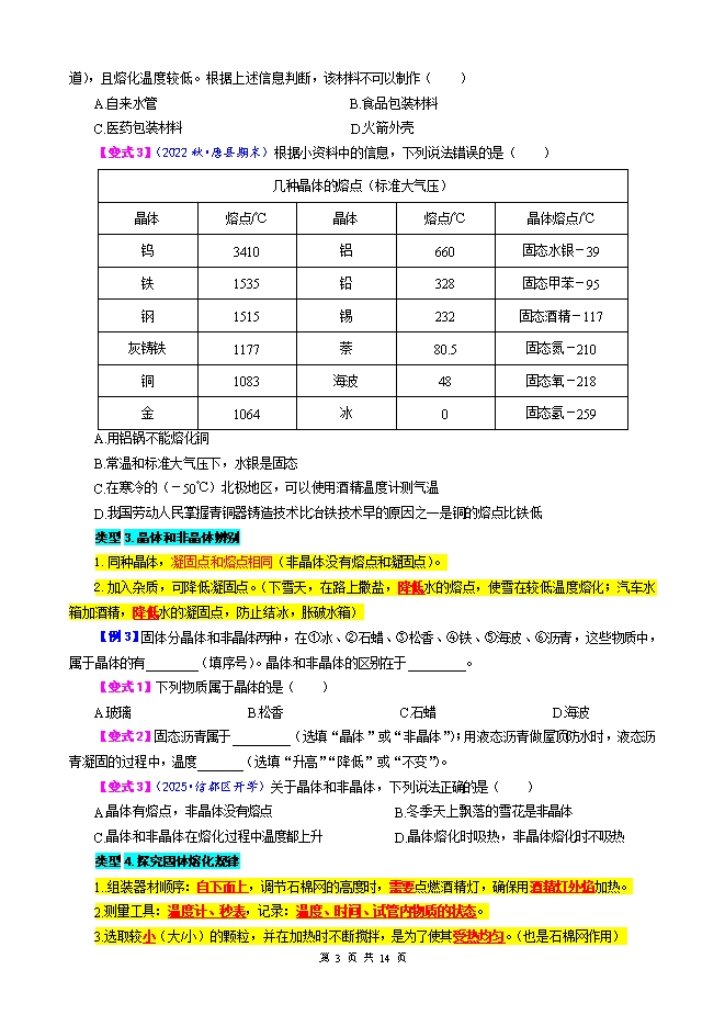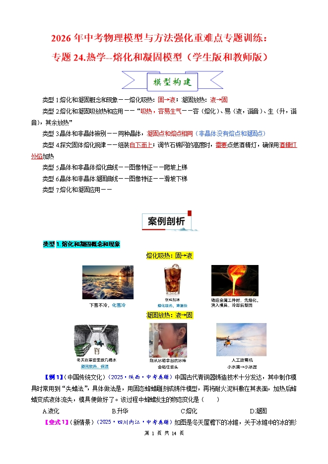 【内容简介】2026年中考物理模型与方法强化重难点专题训练:专题24.热学--熔化和凝固模型(学生版和教师版)