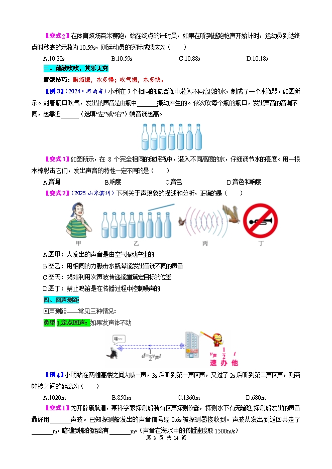 2026年中考物理模型与方法强化重难点专题训练:专题30.声学模型(学生版和教师版)