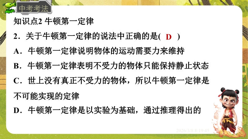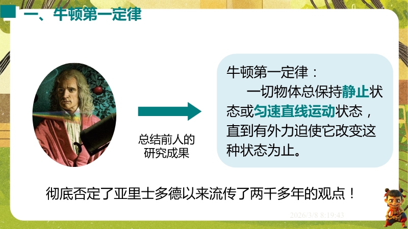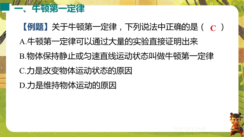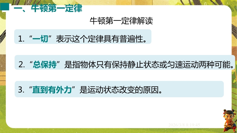 2026春沪粤版物理八年级下学期全套培优精做课件:7.3 牛顿第一定律 惯性