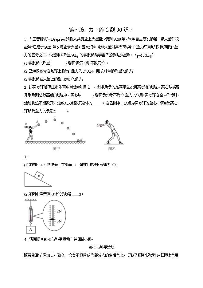 【内容简介】第七章 力(综合题30道)--2025-2026学年人教版八年级物理全册热点题型专练