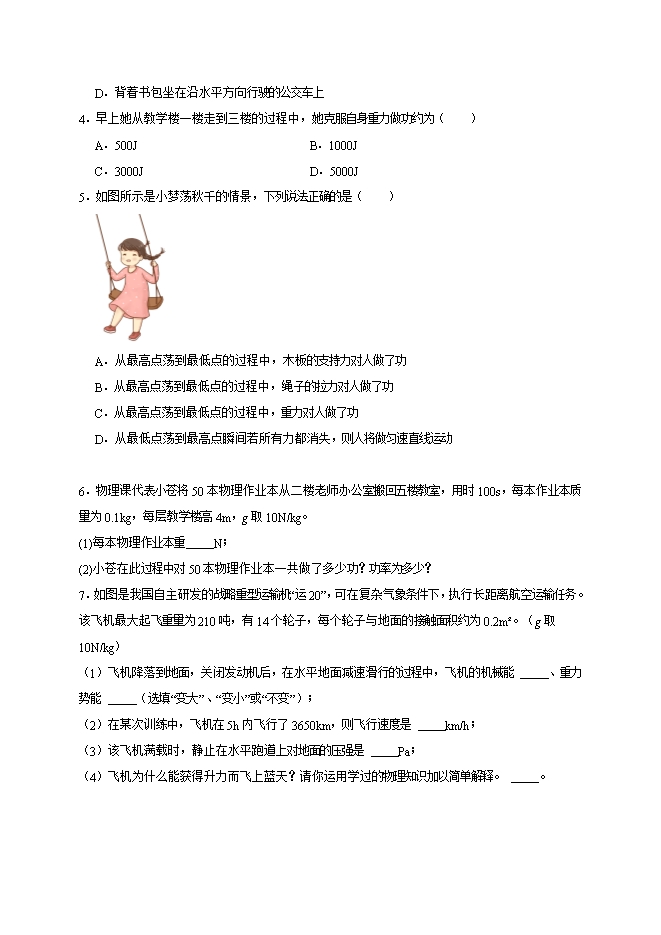 【内容简介】第十一章 功和机械能(综合题30道)--2025-2026学年人教版八年级物理全册热点题型专练