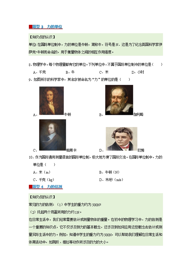 【内容简介】第6章 6.1 力--2025-2026学年沪粤版物理八年级下册同步考点演练
