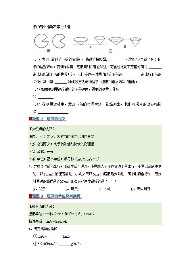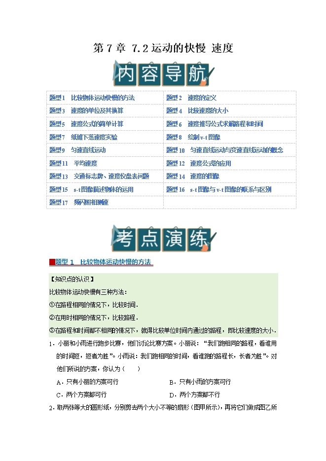 【内容简介】第7章 7.2 运动的快慢 速度--2025-2026学年沪粤版物理八年级下册同步考点演练