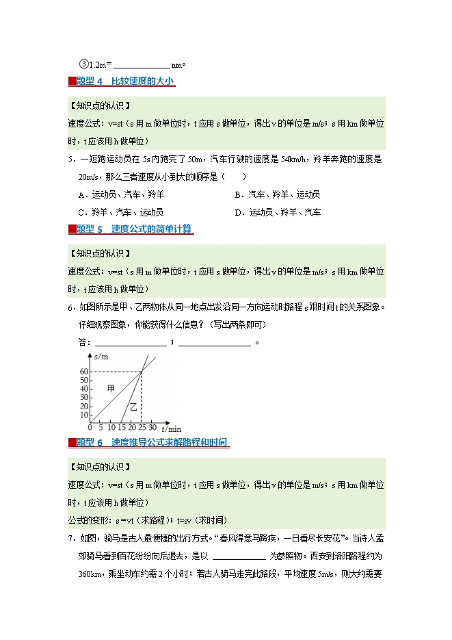 第7章 7.2 运动的快慢 速度--2025-2026学年沪粤版物理八年级下册同步考点演练