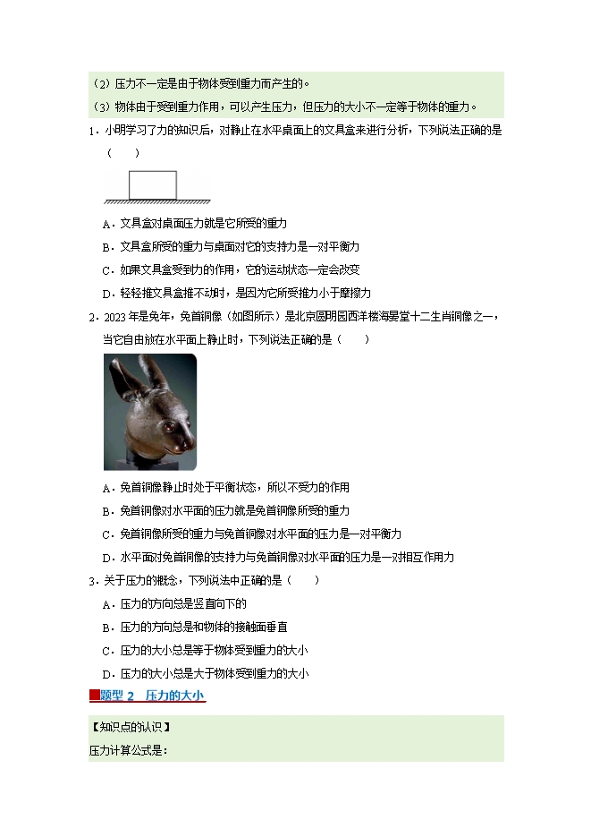【内容简介】第8章 8.1 压强--2025-2026学年沪粤版物理八年级下册同步考点演练