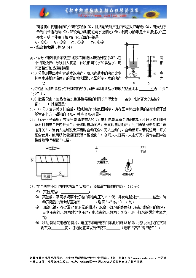 【内容简介】(时间:理化120分钟,总分:120分 物理90分)一、填空题(每空1 分,共19 分)