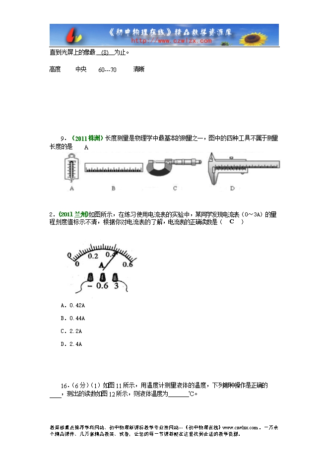 2011年中考物理分类汇编(68套,有答案)--基本仪器