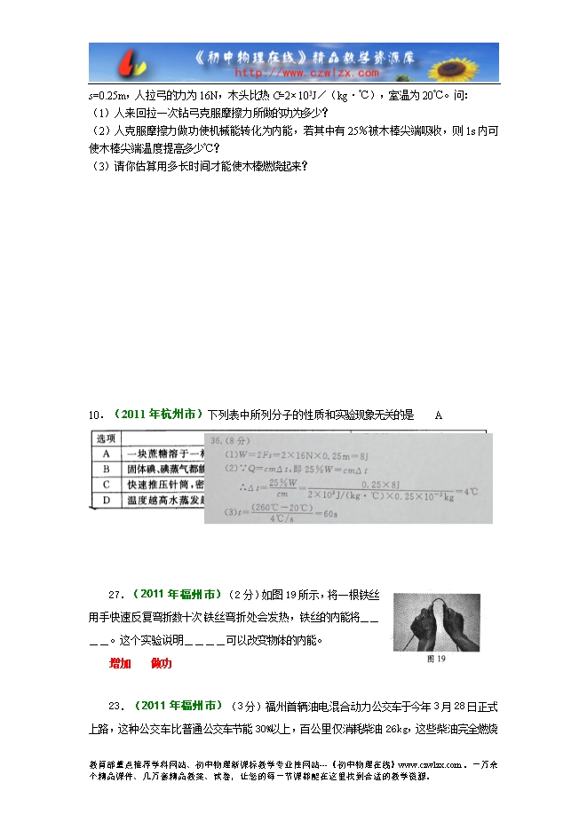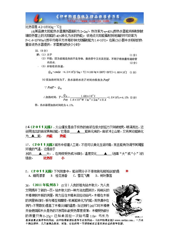 2011年物理中考题分类汇编(68套,有答案)--分子动理论和内能2