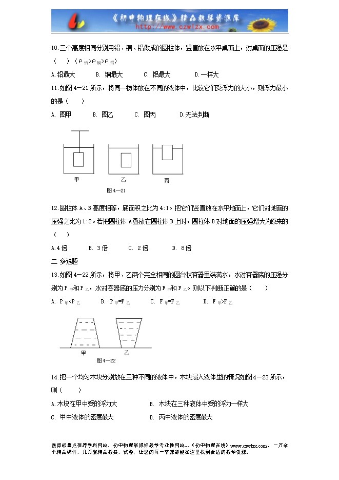 8..已知铁的密度小于铜的密度,把质量相同的铁块和铜块没入水中,它们所受浮力( )