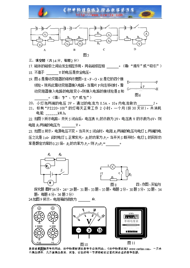 北京市丰台区2011-2012学年度九年级第一学期期末考试物理试题及答案