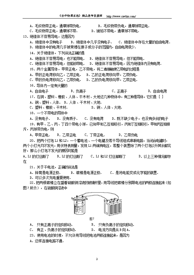 【内容简介】1、一个物体接触带正电的验电器的金属球时,验电器的金属箔先合拢后又逐渐张开,则这个物体