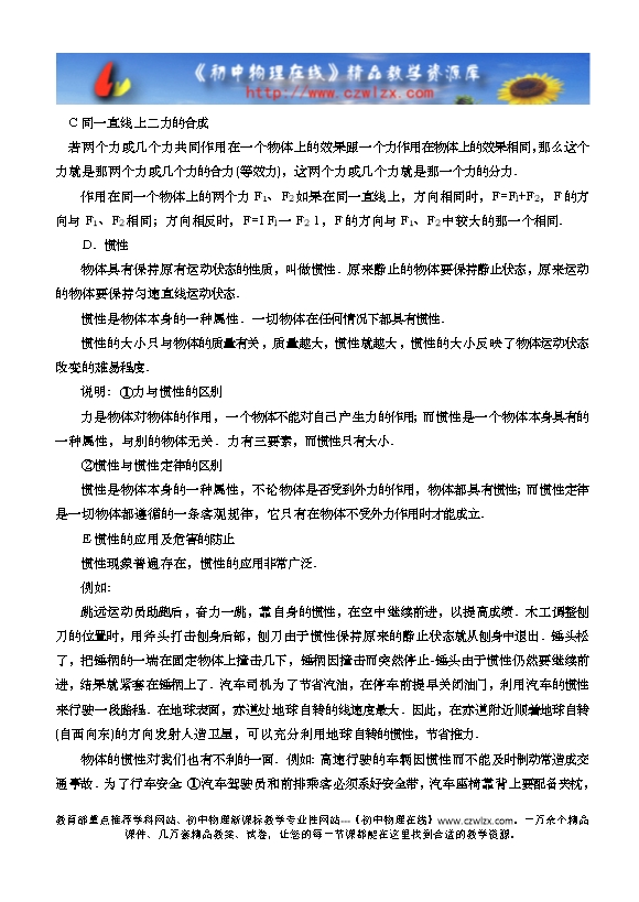 说明:平衡力不是一个具体的作用力,它是指物体同时受到几个力作用,而运动状态未变,即这些力对于改变物体运动状态的效果互相抵消.因此,平衡力是从作用效果上命名的物理概念.