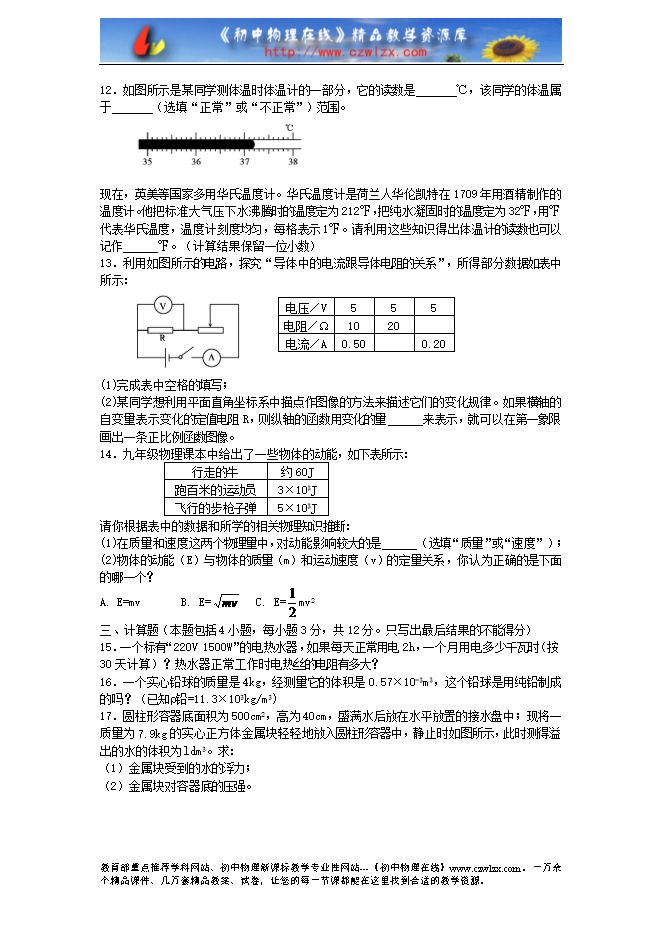 - 1733内蒙古呼和浩特市2013年中考物理试题及答案(扫描版)