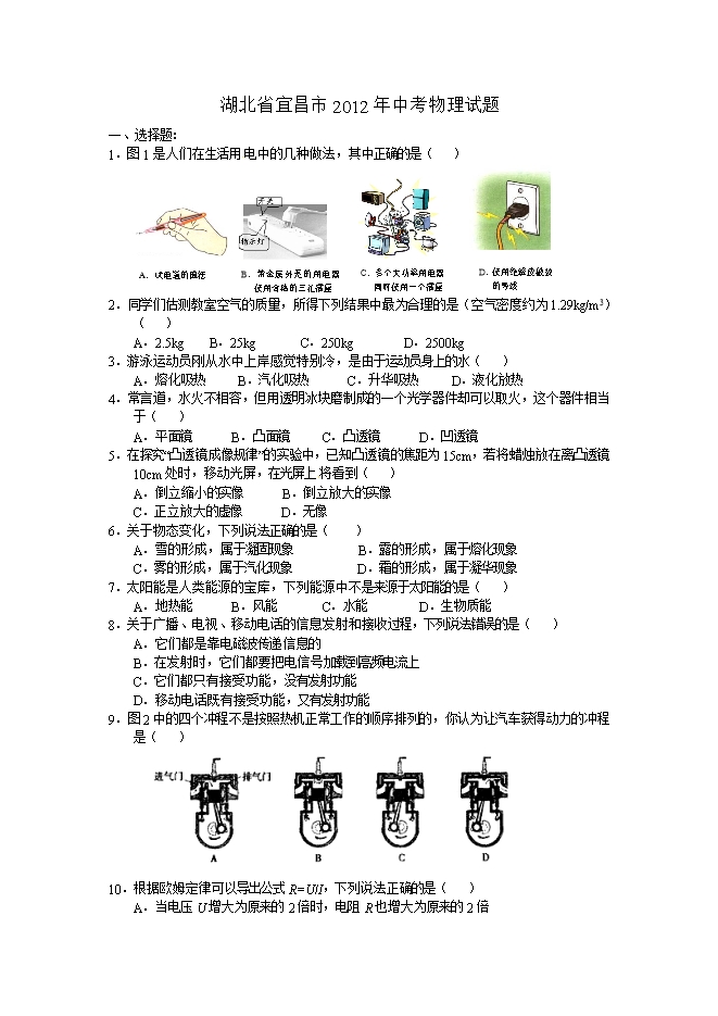 湖北省宜昌市2012年中考物理试题及答案(word版)