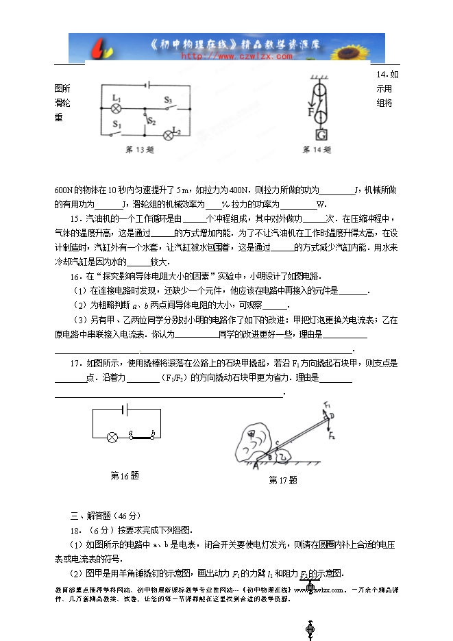 江苏省南通市紫石中学2012届九年级上学期期中考试物理试题及答案