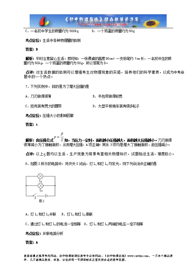 2012年北京市中考物理试题评析(word版,共41页)