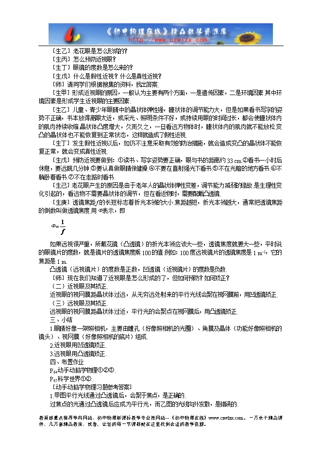 培养学生用前面所学凸透镜成像规律的知识,加深对眼睛的了解.
