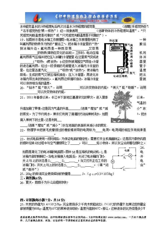 C.用水而不用其它循环物质降低热机的温度,主要是利 用水的比热容最大的特性