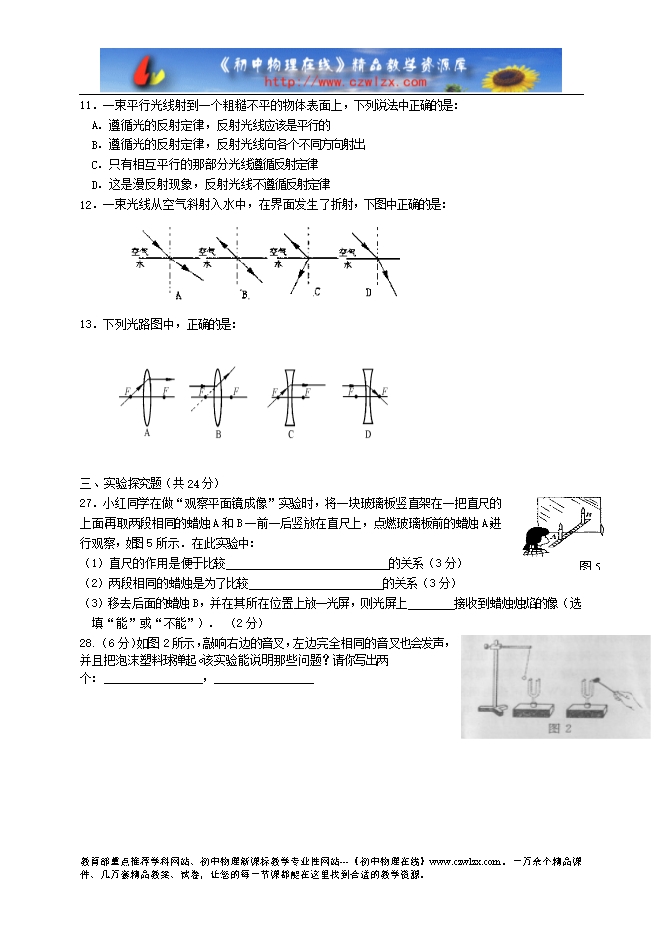 安徽省蒙城县2012-2013学年八年级上学期物理期中考试题及答案