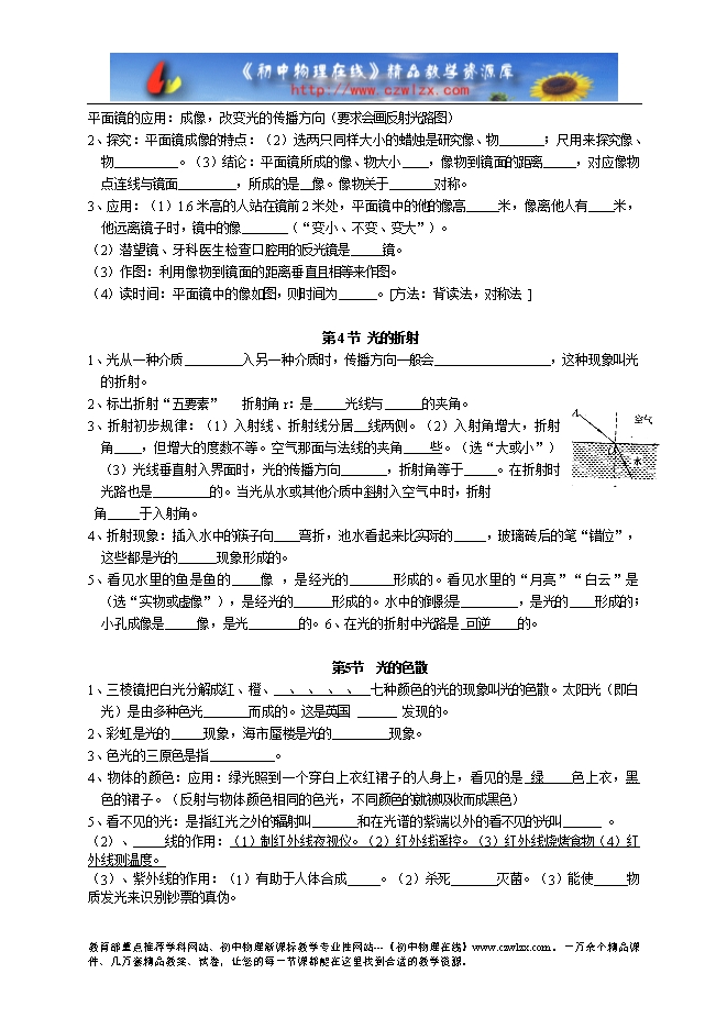 - 620安徽省线上教育资源:初中物理人教版八年级《第四章 光现象 复习课》示范课视频(张艳)