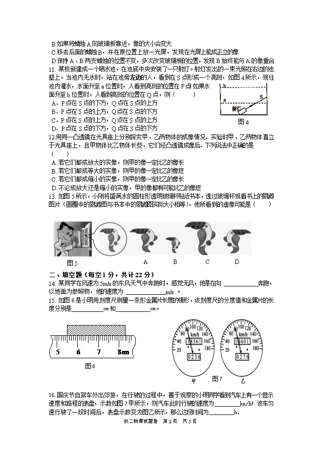 重庆市巴蜀中学2012-2013学年度第一学期半期考试初2014级(二上)物理试题卷(无答案)