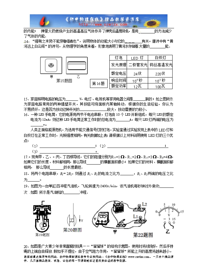 - 1577云南省曲靖市富源县竹园镇竹园中学2014届九年级12月月考物理试题及答案