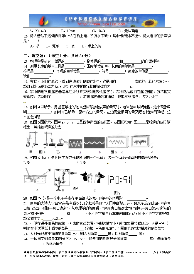 贵州省贵阳市花溪二中、海洋学校2011-2012学年八年级第一次联考物理试题(无答案)