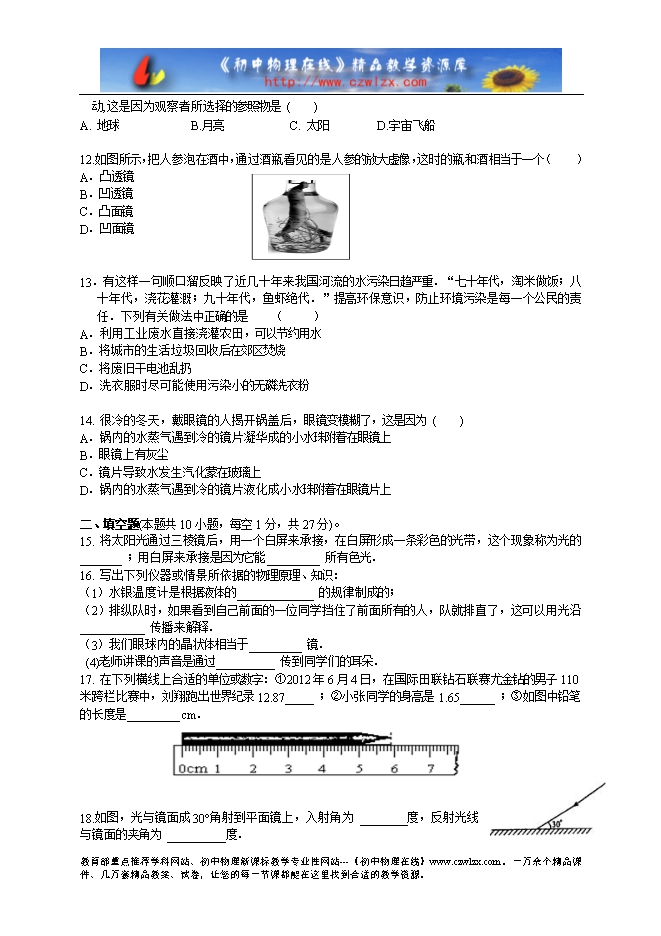 2.以下实例中不能说明声音可以传递信息的是 ( )