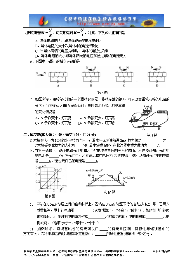 D.导体电阻的大小跟导体两端的电压和通过导体的电流无关