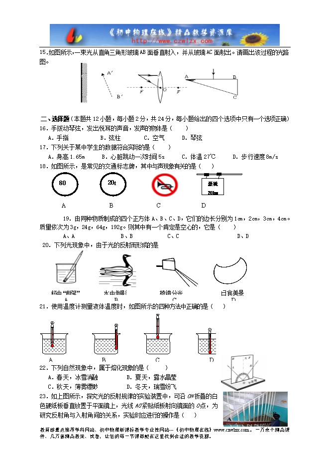 亳州市乐土中学2012-2013年度上册八年级物理期末试卷及答案(沪粤版)