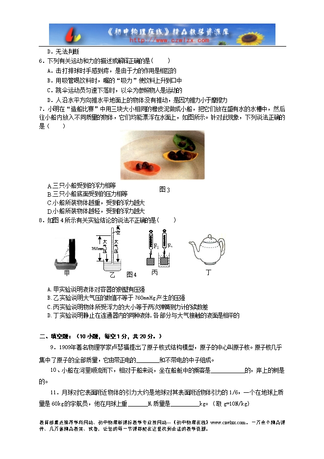 4.放在水平桌面上的茶杯,对桌面有压力,