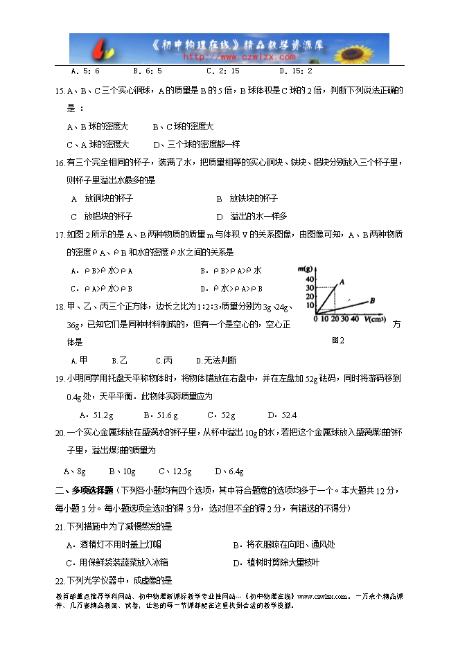 5. 下面几个物理量中可以用来鉴别物质种类的是: