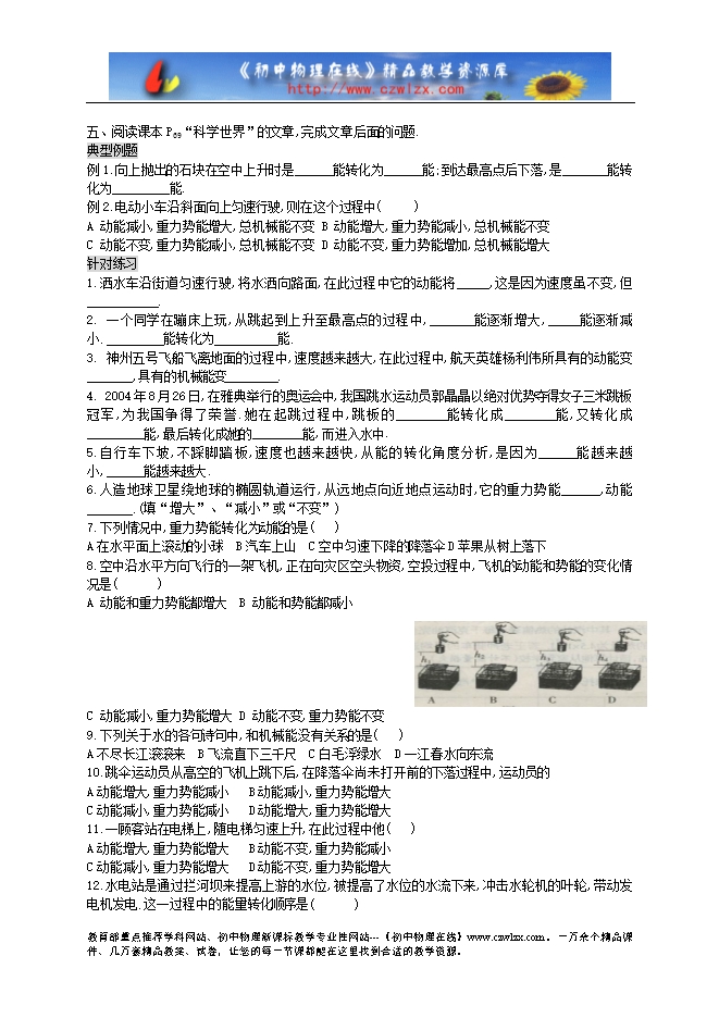 新人教版八年级物理上册《11.4机械能及其转化》导学案