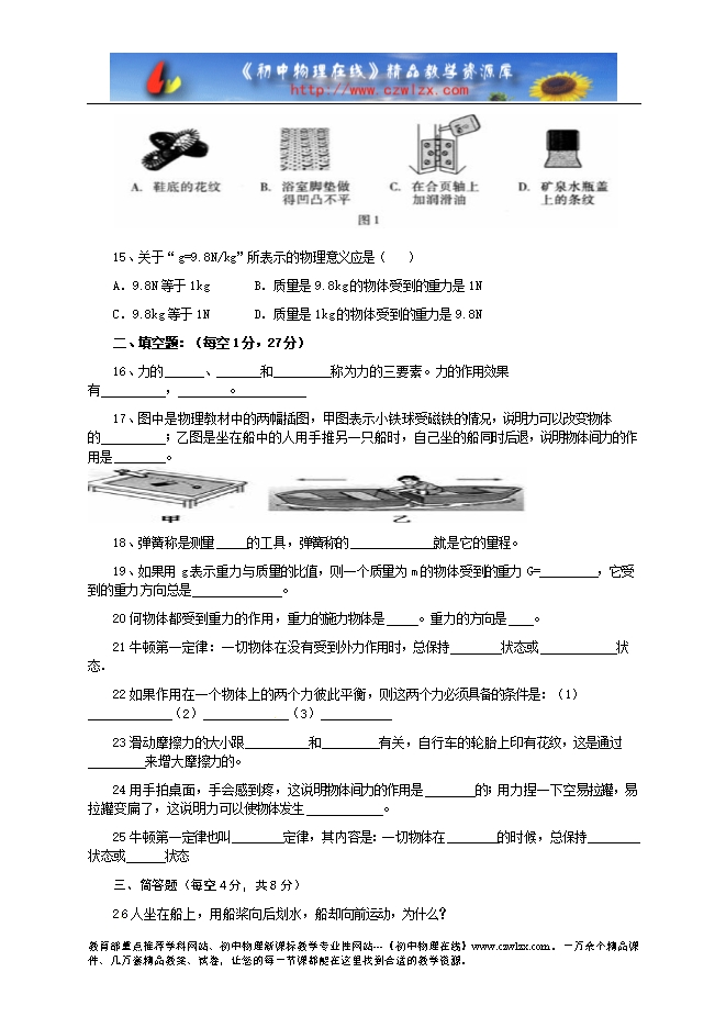 1、 位物理学家中,其名字被用作力的单位的是( )