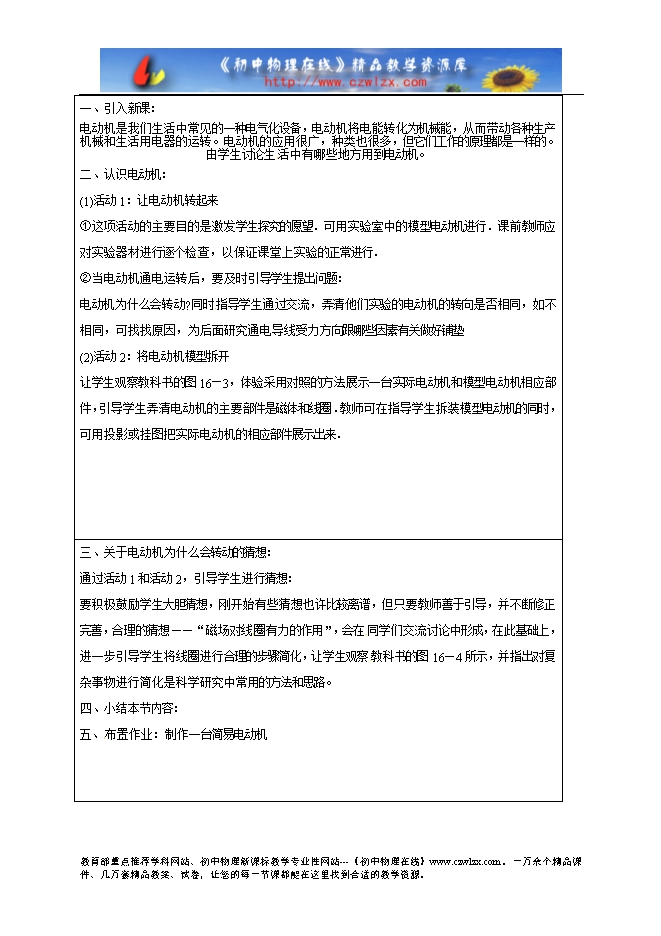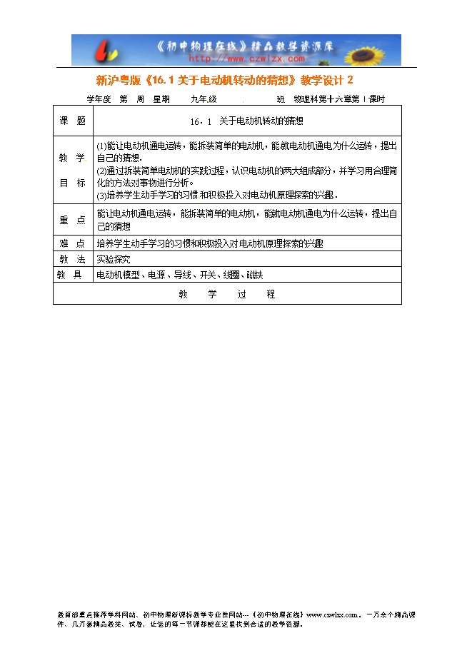 - 下一份资料:新沪粤版《16.1关于电动机转动的猜想》教学设计3