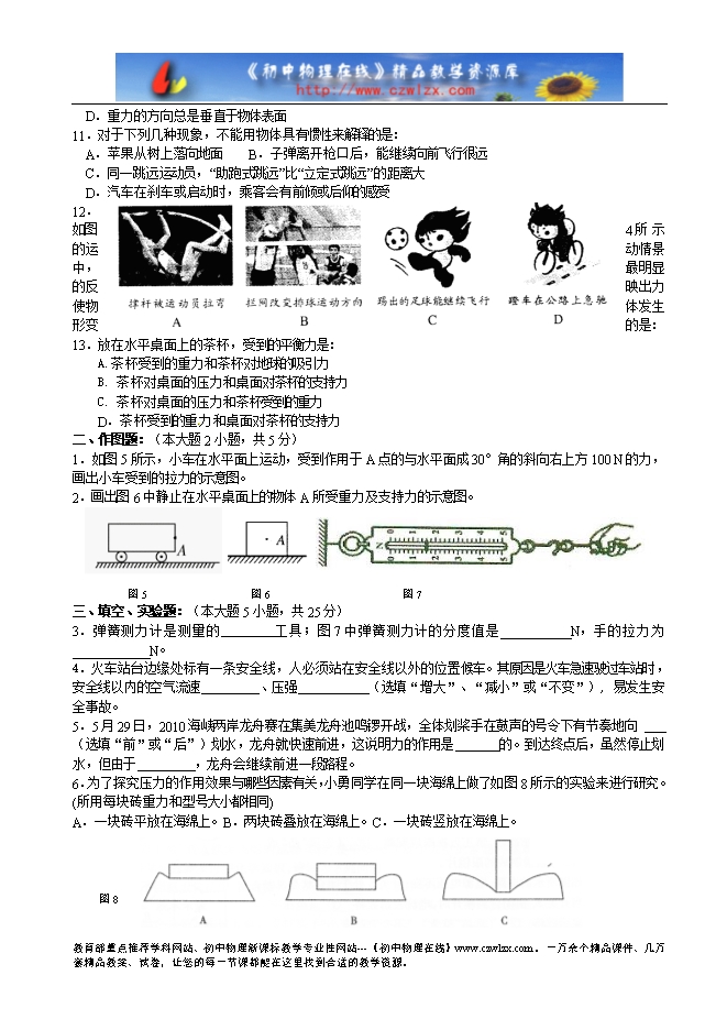 4.关于物体所受重力的方向,下列表示正确的是