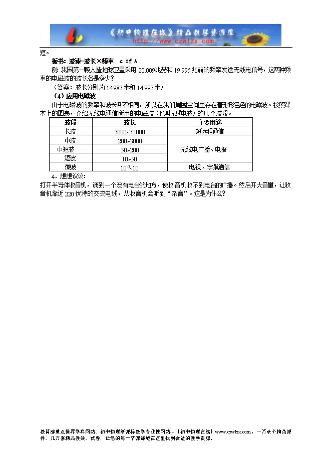 1.常识性了解电磁波,知道电磁波的频率、波长的概念。