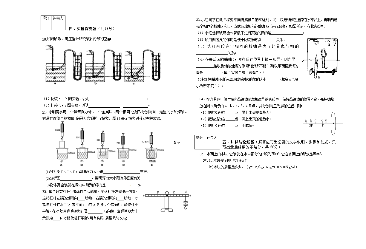甘肃省金昌市金川区双湾中学2013届九年级下学期期中考试物理试题