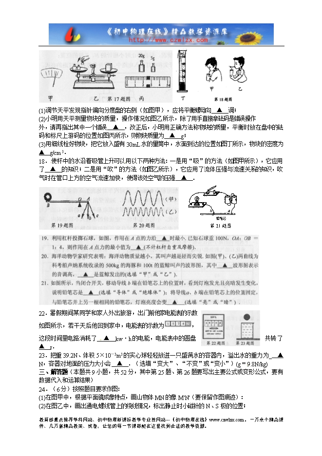 - 3072024年江苏省苏州市中考物理试题及答案(word版)