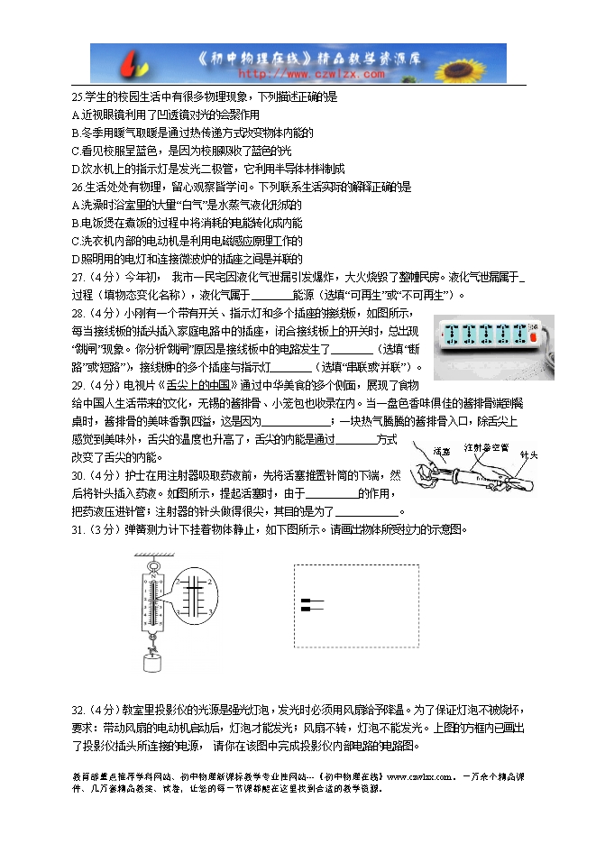 山东省济南市市中区2013年中考三模理综试题(物理部分,无答案)