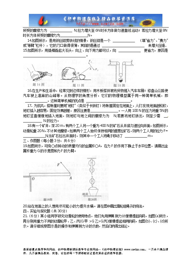 - 3272019-2020沪粤版八年级物理同步单元双基双测AB卷:第六章 力和机械(A卷基础篇)