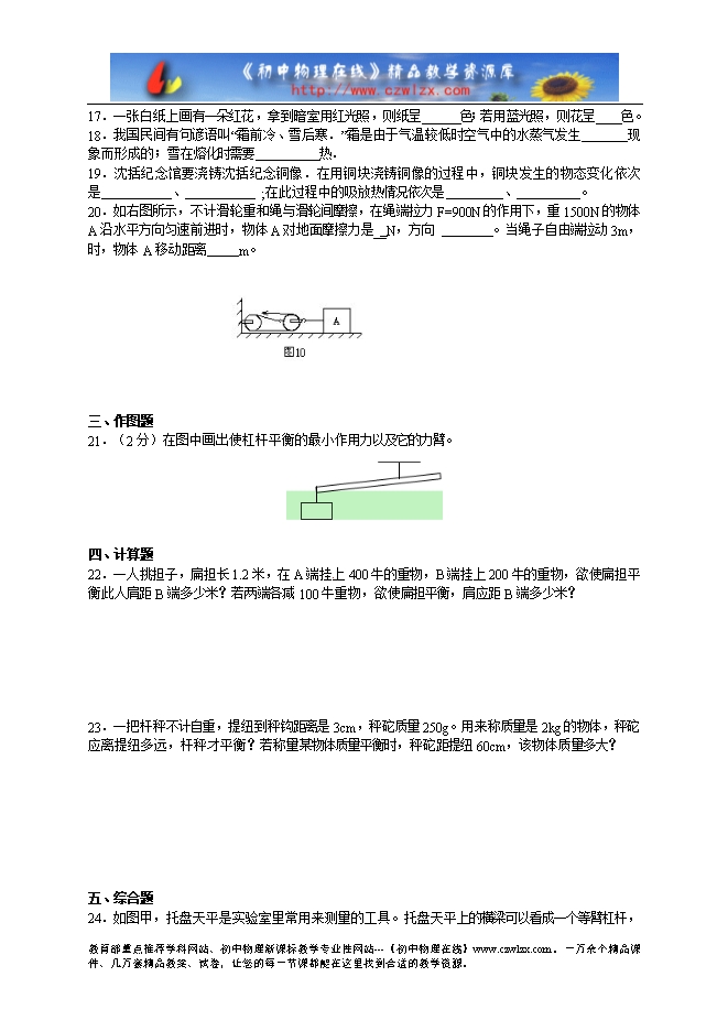- 2097内蒙古鄂尔多斯市杭锦旗巴拉贡学校2012-2013学年度八年级物理期末考试试题及答案
