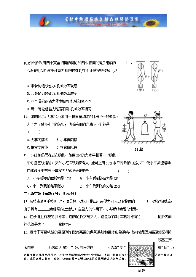 黑龙江省大庆市林甸县2012-2013学年八年级下学期期末检测物理试题(无答案)