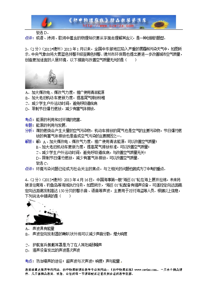 2.(2分)(2013•德州)下列成语涉及的光现象与其物理知识相符的是( )