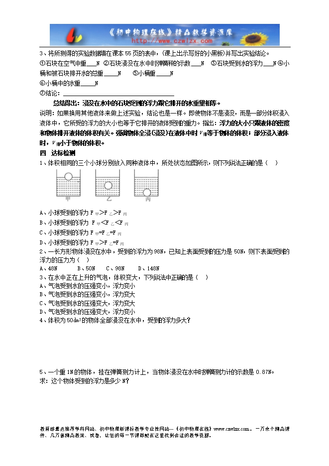 3.会用弹簧测力计测量浸入液体中的物体受到的浮力。