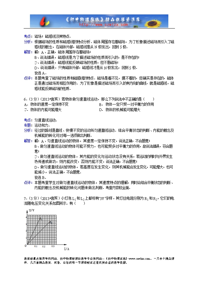 2.(3分)(2013•宜宾)生活中有许多实例或现象应用到了物理知识,说法正确的是( )